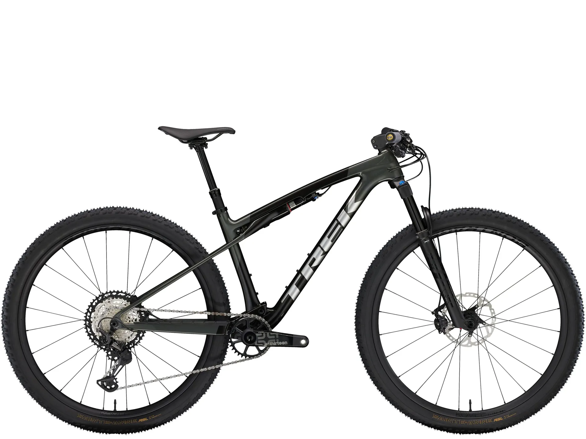 The supercaliber slr 9.8 XT is an ultra-light XC mountain bike that's ready to lay down rubber on race day. Its slr mountain carbon frame is as light as it is meticulous, with a high modulus lay-up that gives you all the stiffness you crave, and none of the weight. XC courses get rowdier every year, so it's equipped with a 110 mm fork and 80 mm of isostrut rear suspension to smooth your roll without kicking pedalling efficiency to the wind. It's all topped off with carbon wheels, a carbon cockpit and shimano'S trail-trusted XT drivetrain.Party laps are fun, but you're ready to race. You want a cross-country steed that sprints up climbs, hammers to the finish and feels good doing it thanks to 80 mm of isostrut rear suspension. From wheels to cockpit, you crave carbon and you want the most meticulous high-mod carbon lay-up we offer on a mountain bike.A featherweight, high-modulus slr oclv mountain carbon frame with modern XC geometry. 110 mm of front suspension from a Fox performance 34 step-cast fork with float evol air spring, grip damper, dual remote lockout and 80 mm of isostrut rear suspension from a Rockshox sidluxe shock. A Shimano XT 12-speed drivetrain, bontrager kovee elite 30 carbon wheels, carbon bontrager rsl integrated bar/stem combo, bontrager line dropper post and Shimano deore XT m8100 hydraulic disc brakes.The supercaliber slr 9.8 XT is bred for racing and comes from a pedigree of champions. You get our top carbon XC full-suspension frame dripping with carbon components and the trail-trusted reliability of shimano'S XT drivetrain.- you get a 110 mm fork and 80 mm of isostrut rear suspension that partners with slacker, capable geometry for handling the roots and rocks of modern XC courses- you don't have to compromise stiffness for weight savings thanks to the slr oclv mountain carbon frame that's intensely light, stiff and responsive- isostrut gives you tunable, damped suspension without missing out on efficiency for hammering up climbs at top speed- pivotless seat stays save on weight and actively bend to help soak up trail chatter- upgraded components, like shimano'S XT drivetrain and a step-cast Fox 34 fork, give you the advantage you want, where you want itnothing else like itsupercaliberâs unique frame design ditches traditional suspension hardware so thereâs less weight, less maintenance and less lateral flex. Isostrut connects the mainframe to the pivot-less seat stays to offer about 80âmm of rear wheel travel. This design offers a unique blend of efficiency, traction and fatigue-fighting compliance that keeps racers fresh and in control.Isostrutisostrut integrated suspension gives you just enough travel to stay in control. It's fully tunable like a standard rear shock, but without the weight penalty of a full suspension bike.