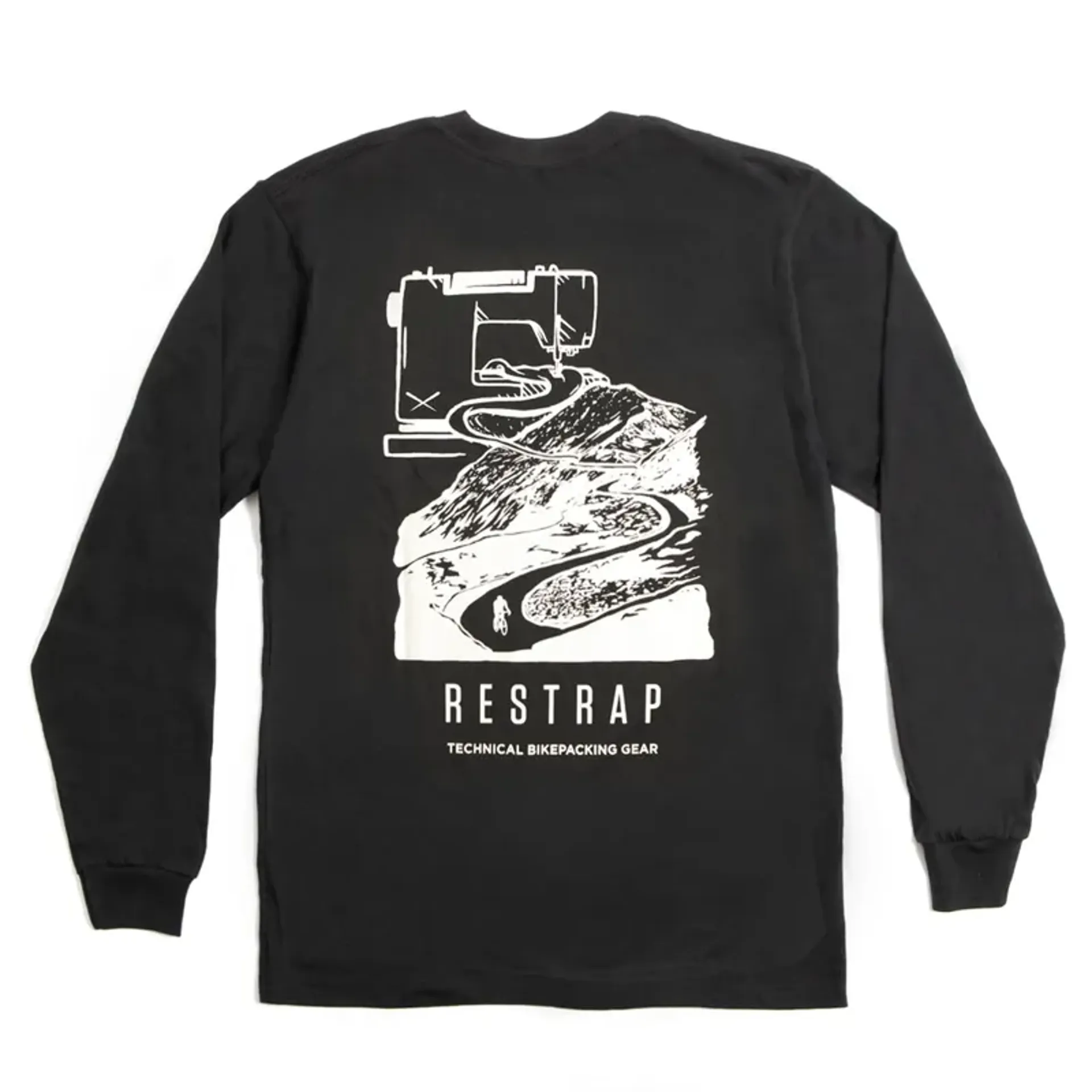 Restrap's Long Sleeve T-shirt is screen printed, by hand in Yorkshire, on a premium black Gildan Hammer T-shirt to stand the test of time.